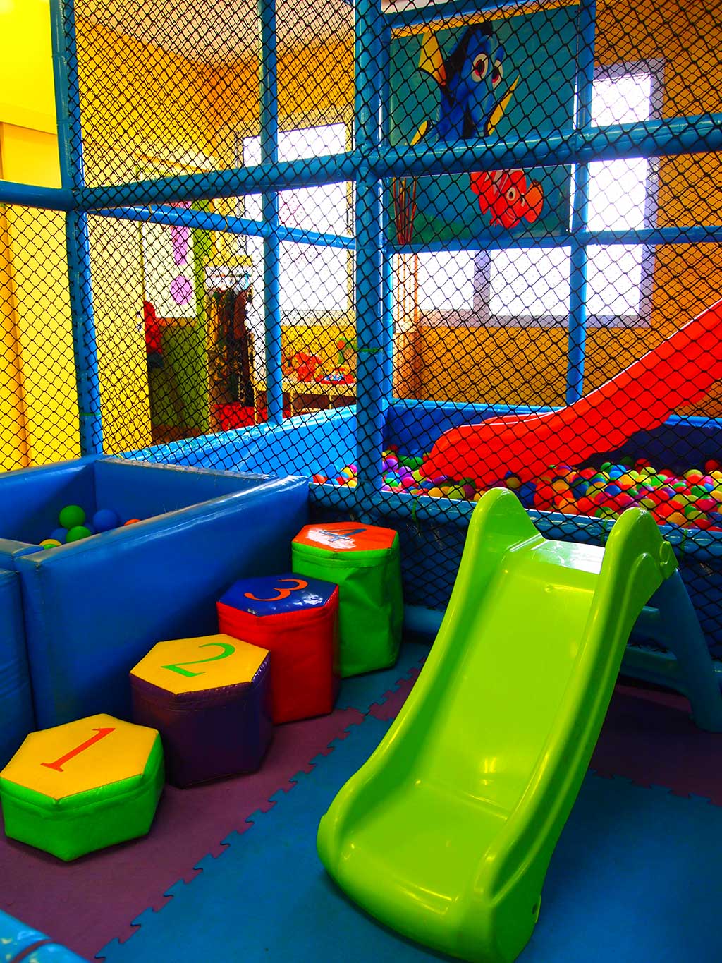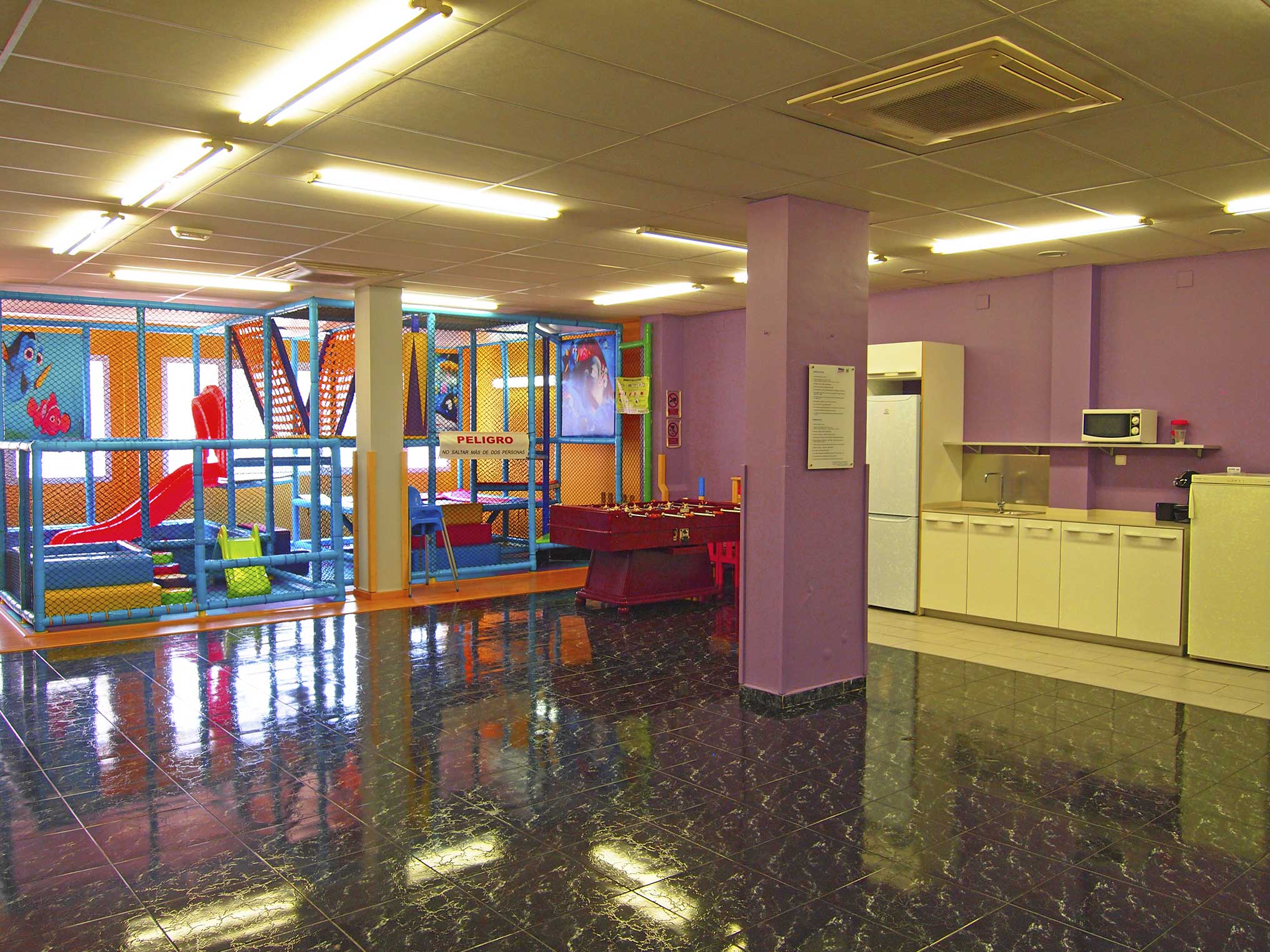 - Zona de nens proveïda de happy park amb dues plantes de 25m2 dotada d'jumping i piscina de boles amb tobogan, a més d'una zona per als més petits equipada amb tot tipus de joguines i una piscina de boles "baby".