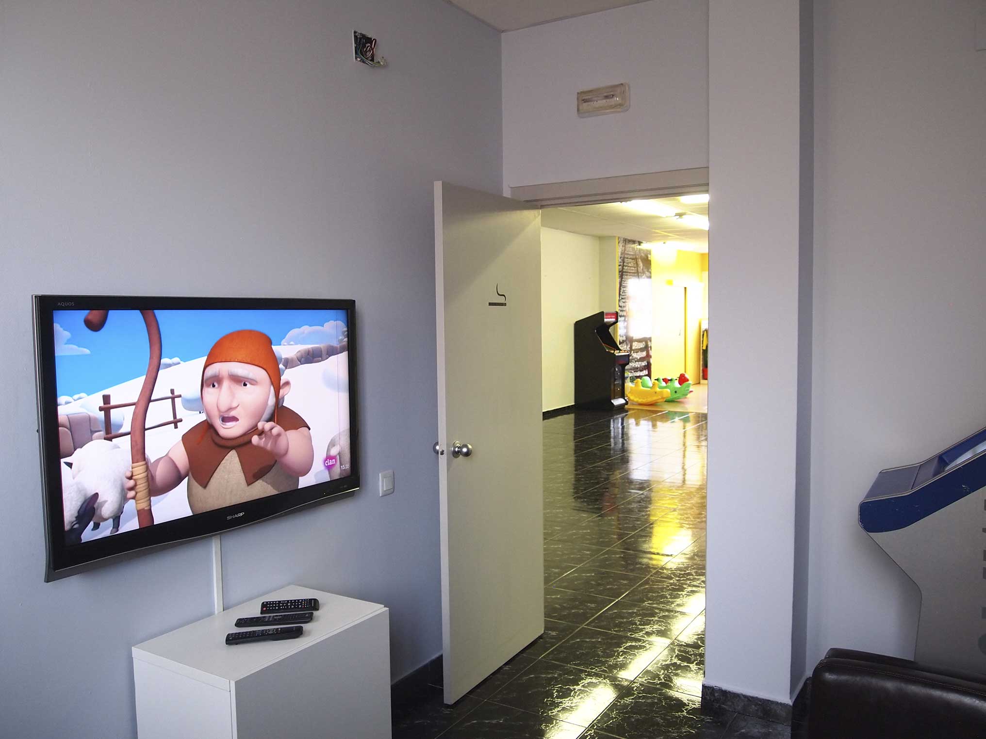 - També hi ha espai dedicat a la diversió dels adults amb diana de dards, futbolí, màquina vídeo retro i per tenir més tranquil·litat una sala apartada amb maquina vídeo.